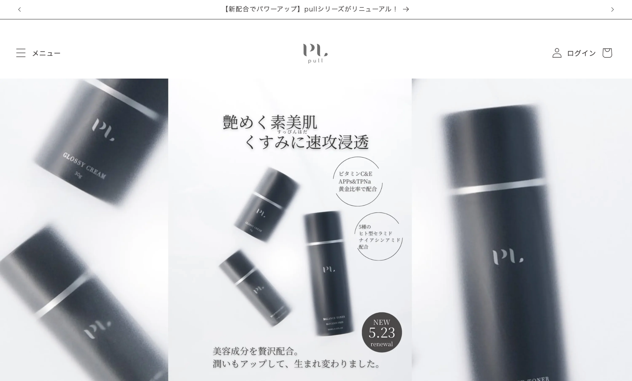 洗練されたUI/UXで、コスメブランド「pull」の世界観を最大限に表現。 ShopifyによるD2C展開を軸に、商品特性を活かした構成で購入体験を最適化。 ミニマルでモダンなデザインが印象的なスキンケアブランド「pull」の商品を展開する公式ECサイト。ブランドのもつ繊細で洗練されたトーンをUI/UXで丁寧に再現し、訪問者が世界観に自然と引き込まれる構成に。Shopifyをベースに、商品特性ごとのレイアウト最適化やCV導線の整理、ユーザーの感性に訴えるビジュアル設計など、D2Cならではの購入体験向上を図った設計に。現在もコンテンツや販促施策の改善提案・運用を継続中。